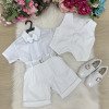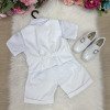 Conjunto composto por: Camisa social na cor Branca, gravata borboleta BRANCO calça na cor BRANCO, suspensorio BRANCO e Cinto BRANCO