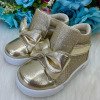 Tênis Bota Encanto de Criança Lacinho Dourado Glitter Rebeca