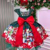 Laço vermelho volumoso na parte de trás, que garante um acabamento delicado e elegante.