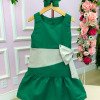 Laço lateral: Grande e estruturado no mesmo tecido prateado da faixa, com aplicação delicada em strass no centro, garantindo aquele toque de festa;