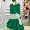 Faixa diagonal: Em tecido prateado com leve brilho acetinado, atravessa o vestido criando contraste sofisticado;
