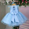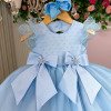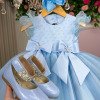 Confeccionado em tecido misto possui forro em poliéster e algodão para não incomodar a criança e proporcionando um caimento incrível e sofisticado, possui gola redonda, comprimento médio, mangas curtas, possui elástico nas costas para melhor ajuste, acabamento com lindo laço na parte posterior do vestido completa o look dos sonhos!
