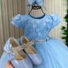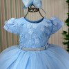 Confeccionado em tecido misto possui forro em poliéster e algodão para não incomodar a criança e proporcionando um caimento incrível e sofisticado, possui gola redonda, comprimento médio, mangas curtas, possui elástico nas costas para melhor ajuste, acabamento com lindo laço na parte posterior do vestido completa o look dos sonhos!