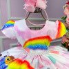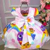 Confeccionado em tecido misto possui forro em poliéster e algodão para não incomodar a criança e proporcionando um caimento incrível e sofisticado, possui gola redonda, comprimento médio, mangas curtas, possui elástico nas costas para melhor ajuste, acabamento com lindo laço na parte posterior do vestido completa o look dos sonhos!