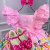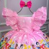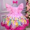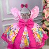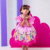 Confeccionado em tecido misto possui forro em poliéster e algodão para não incomodar a criança e proporcionando um caimento incrível e sofisticado, possui gola redonda, comprimento médio, mangas curtas, possui elástico nas costas para melhor ajuste, acabamento com lindo laço na parte posterior do vestido completa o look dos sonhos!