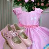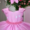 Confeccionado em tecido misto possui forro em poliéster e algodão para não incomodar a criança e proporcionando um caimento incrível e sofisticado, possui gola redonda, comprimento médio, mangas curtas, contém, também, elástico nas costas para melhor ajuste, acabamento com lindo laço na parte posterior do vestido completa o look dos sonhos!